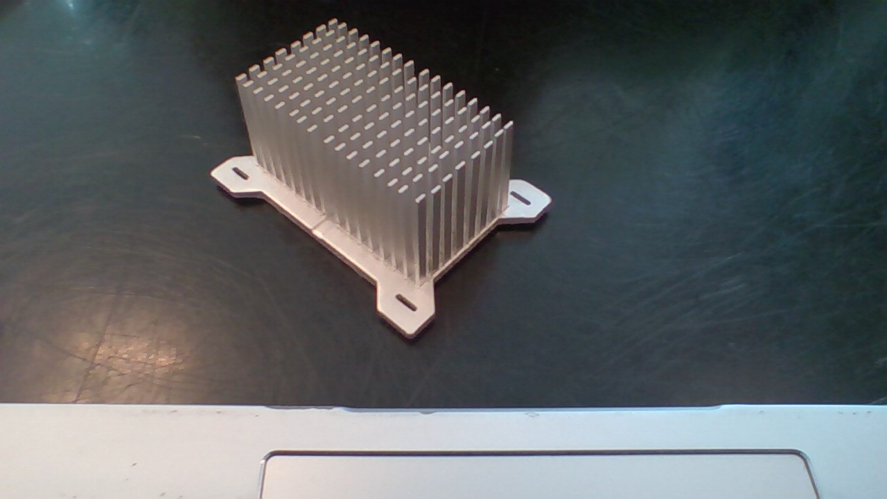 Ik kreeg de Heatsink. Dit onderdeel zit boven de CPU en zorgt er voor dat deze niet oververhit raakt. Dit doet het door de warme lucht op te vangen tussen en in de pinnen en het dan omhoog te lagen stijgen. Het is ook niet heel moeilijk om te maken, omdat het gewoon een stuk gietijzel is.